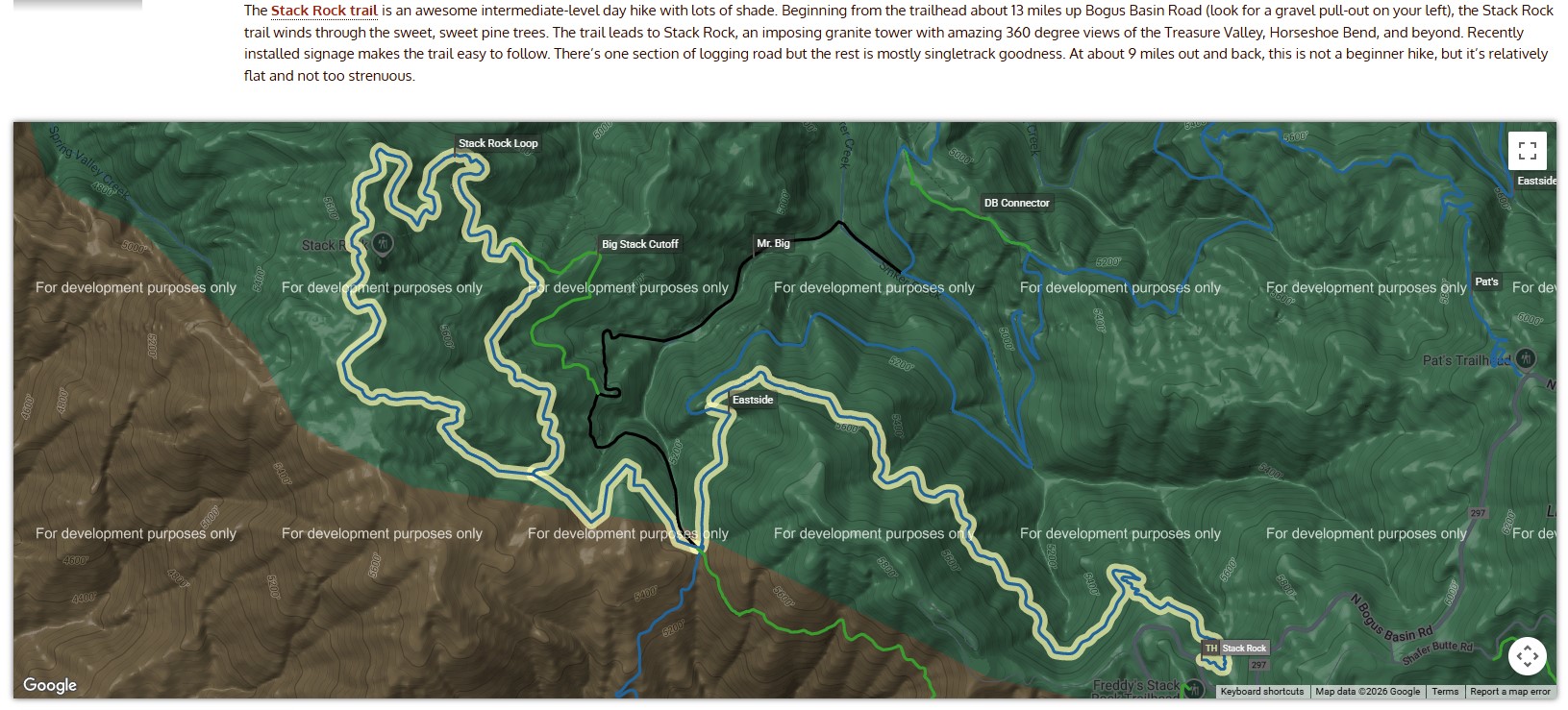 Location - Stack Rock - Bogus Basin Road